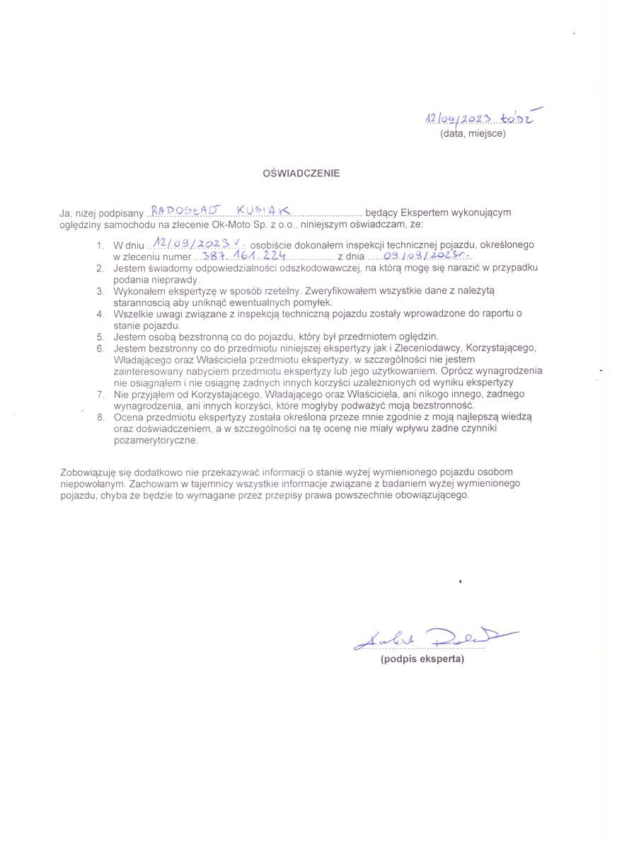 - Weryfikacja po numerze VIN nie wykazała żadnych nieprawidłowości w przebiegu.
