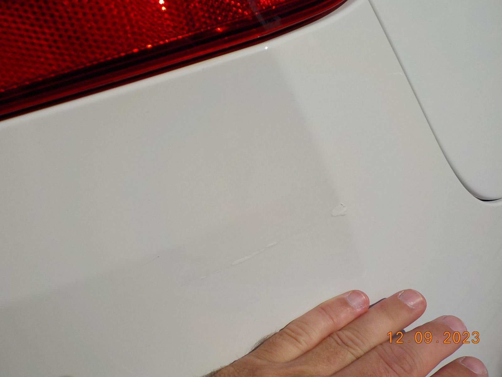 Oględziny pojazdu odbyły się w umówionym warsztacie. Nadwozie było czyste i prezentowało się poprawnie - bez widocznych różnic w odcieniach pomiędzy poszczególnymi elementami nadwozia i bez odchyłek w wartościach szczelin pomiędzy nimi. Na nadwoziu widoczne drobne uszkodzenia eksploatacyjne w postaci: płytkich zarysowań i zadrapań, odprysków lakieru, odprysków na krawędziach, delikatnych punktowych wgnieceń (pokrywa silnika, błotnik prawy przedni, zderzak tylny). Widoczne również zamalowane zadrapania (zaprawki) na zderzaku tylnym.